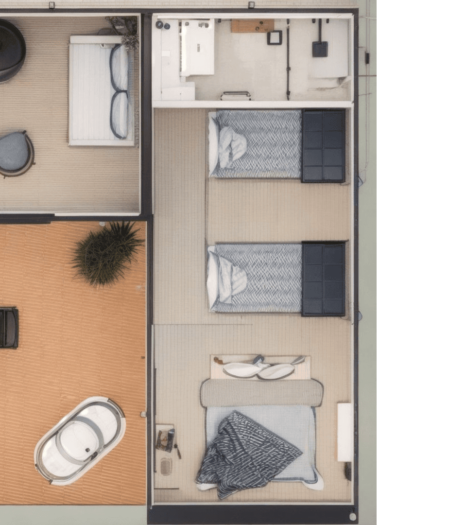 A Cabana Horizonte é composta por duas unidades em estrutura modular, totalizando 42m² de área interna. Projetada para acomodar até quatro pessoas, oferece conforto, funcionalidade e um layout inteligente em estilo moderno.