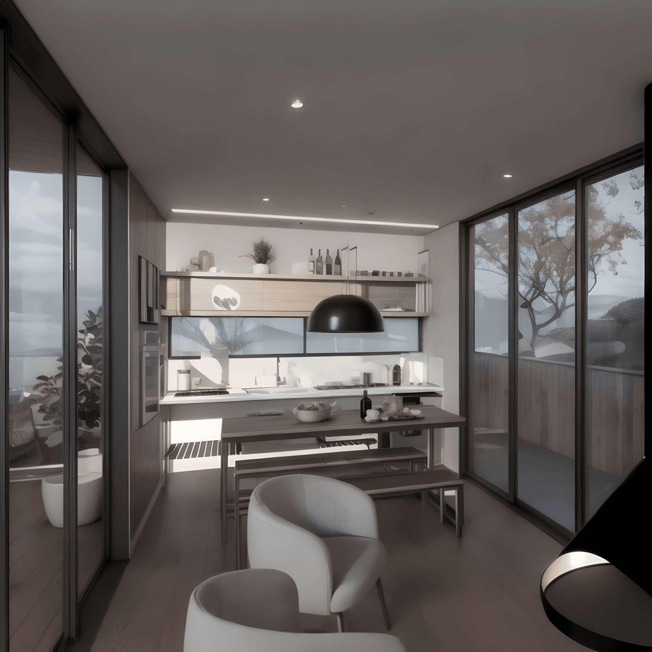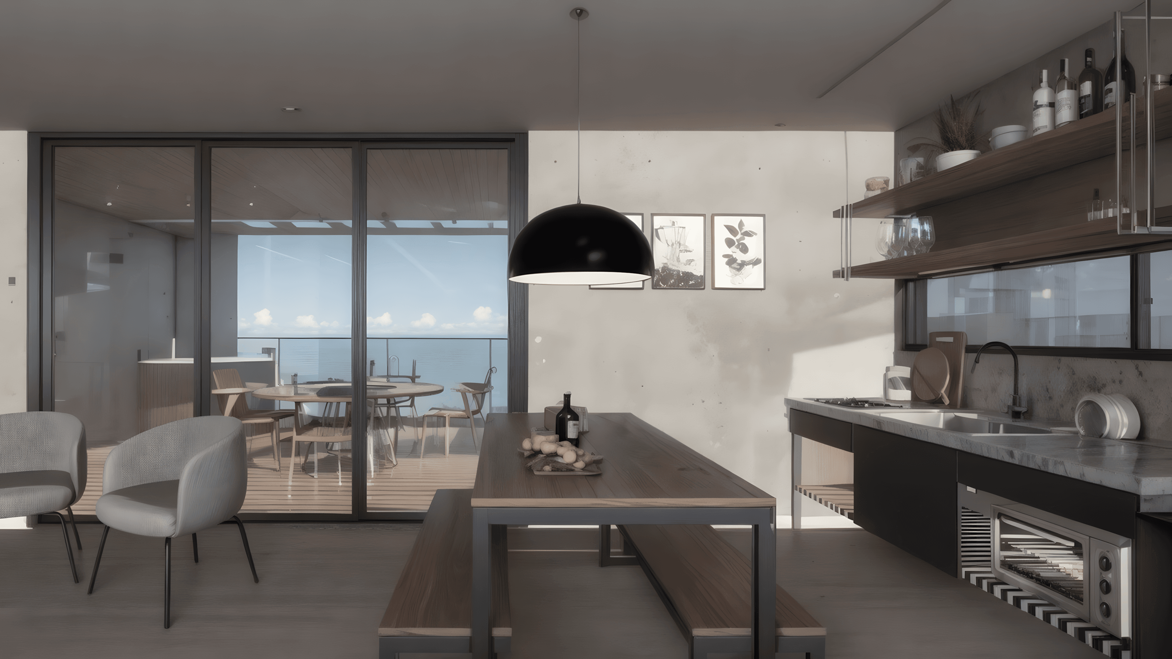 O projeto contempla cozinha e sala integradas, quarto de casal, quarto de hóspedes e banheiro espaçoso, garantindo praticidade e bem-estar no dia a dia. A configuração dos ambientes prioriza integração, iluminação natural e aproveitamento eficiente dos espaços.