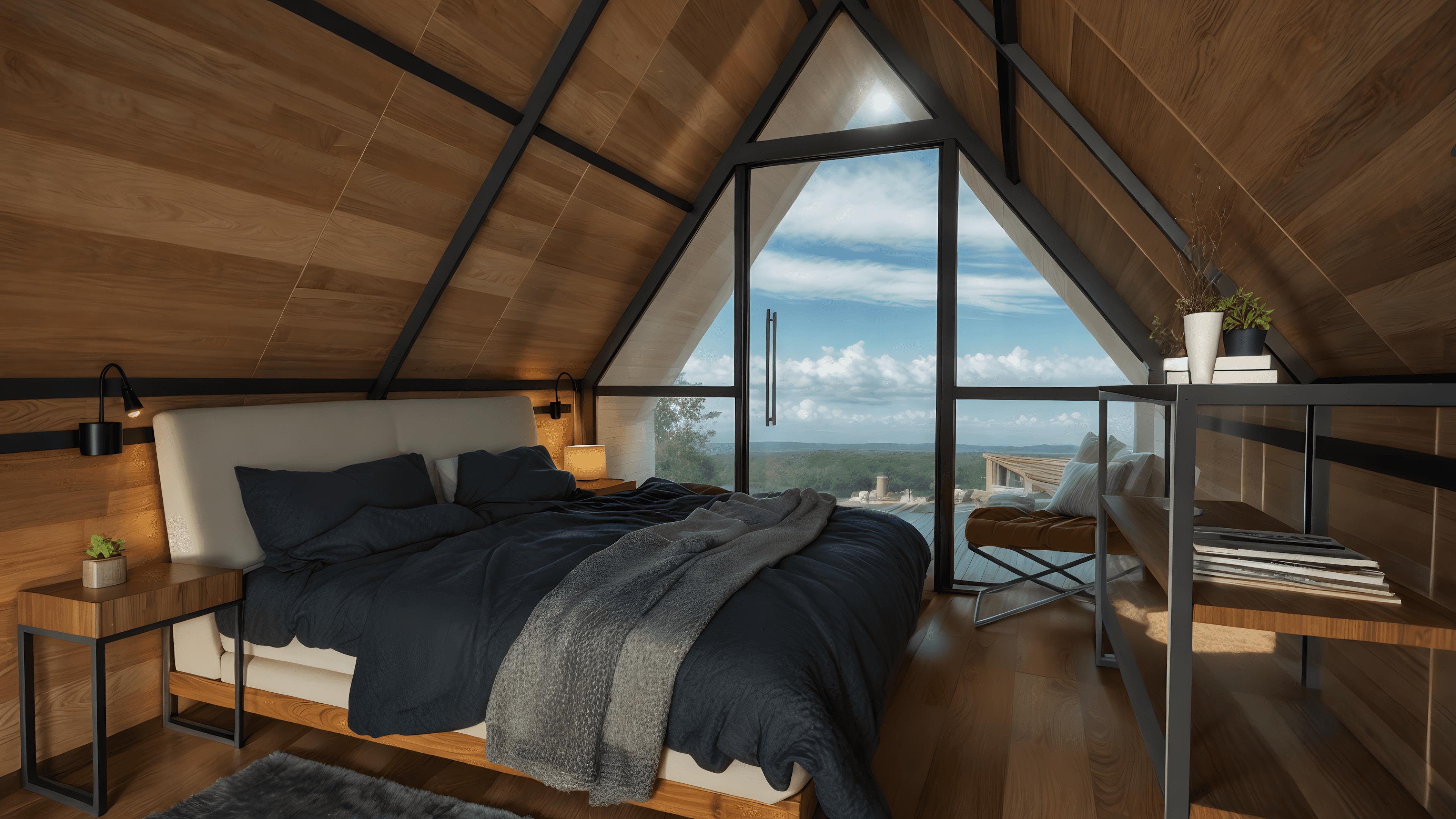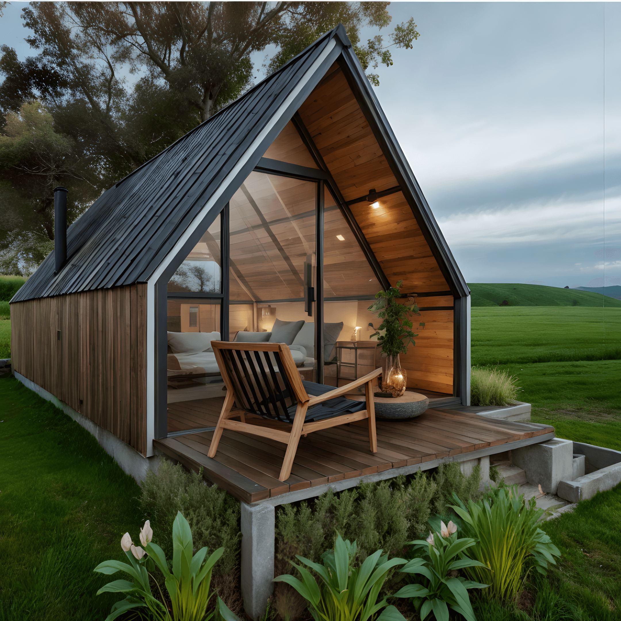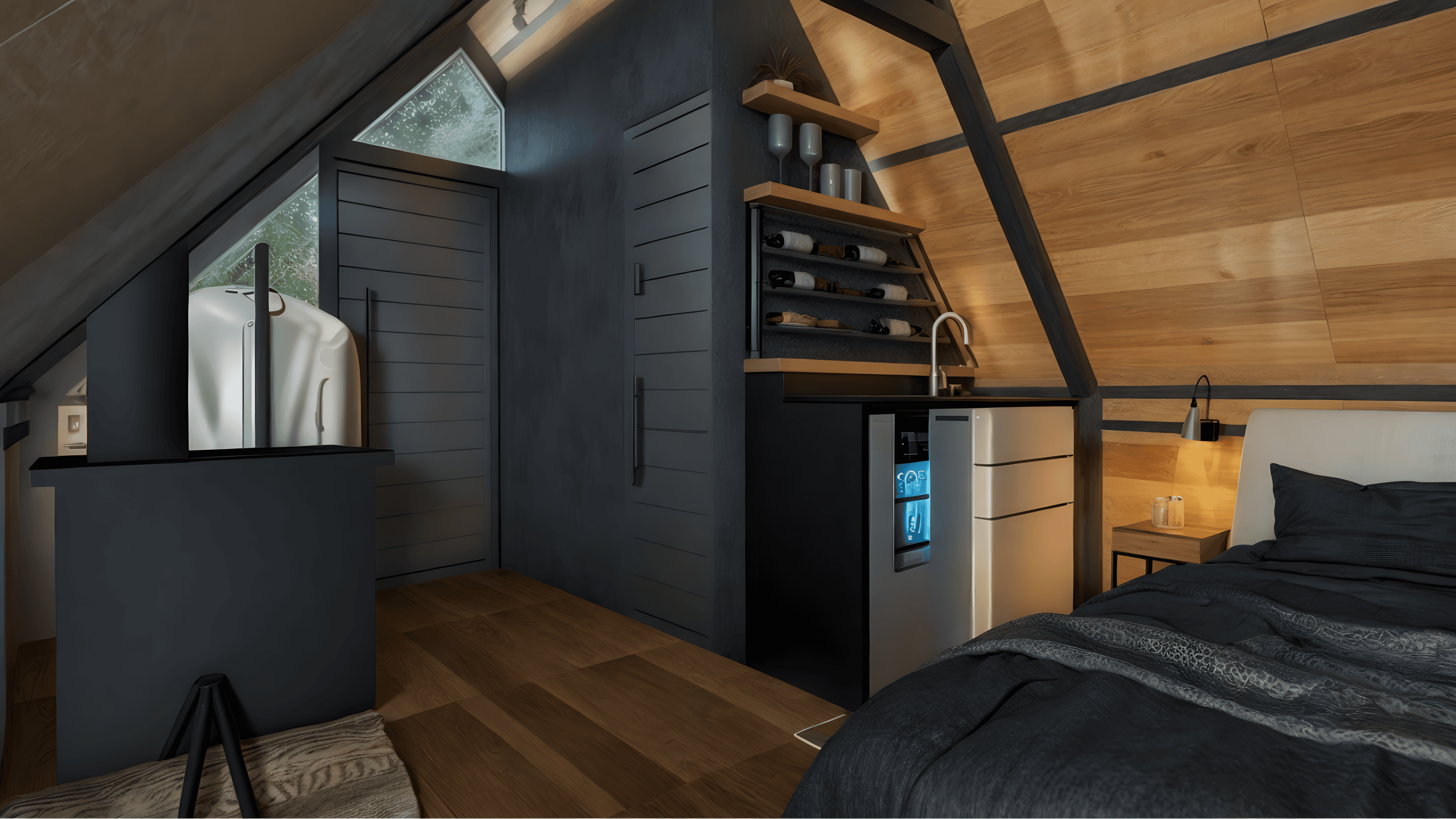 O Chalé A é uma unidade em estrutura modular com 21m² de área interna, composta por módulo de chalé e deck com cobertura. Inspirado no estilo europeu, combina charme, conforto e funcionalidade em um formato compacto e sofisticado. Projetado para oferecer uma experiência acolhedora, integra estética contemporânea e conexão com a natureza em um conceito versátil e transportável. O layout contempla quarto de casal integrado à cozinha e sala com lareira, além de banheiro confortável e deck privativo para lazer. A proposta privilegia integração, iluminação natural e aproveitamento inteligente dos espaços, criando um ambiente ideal para descanso e contemplação.