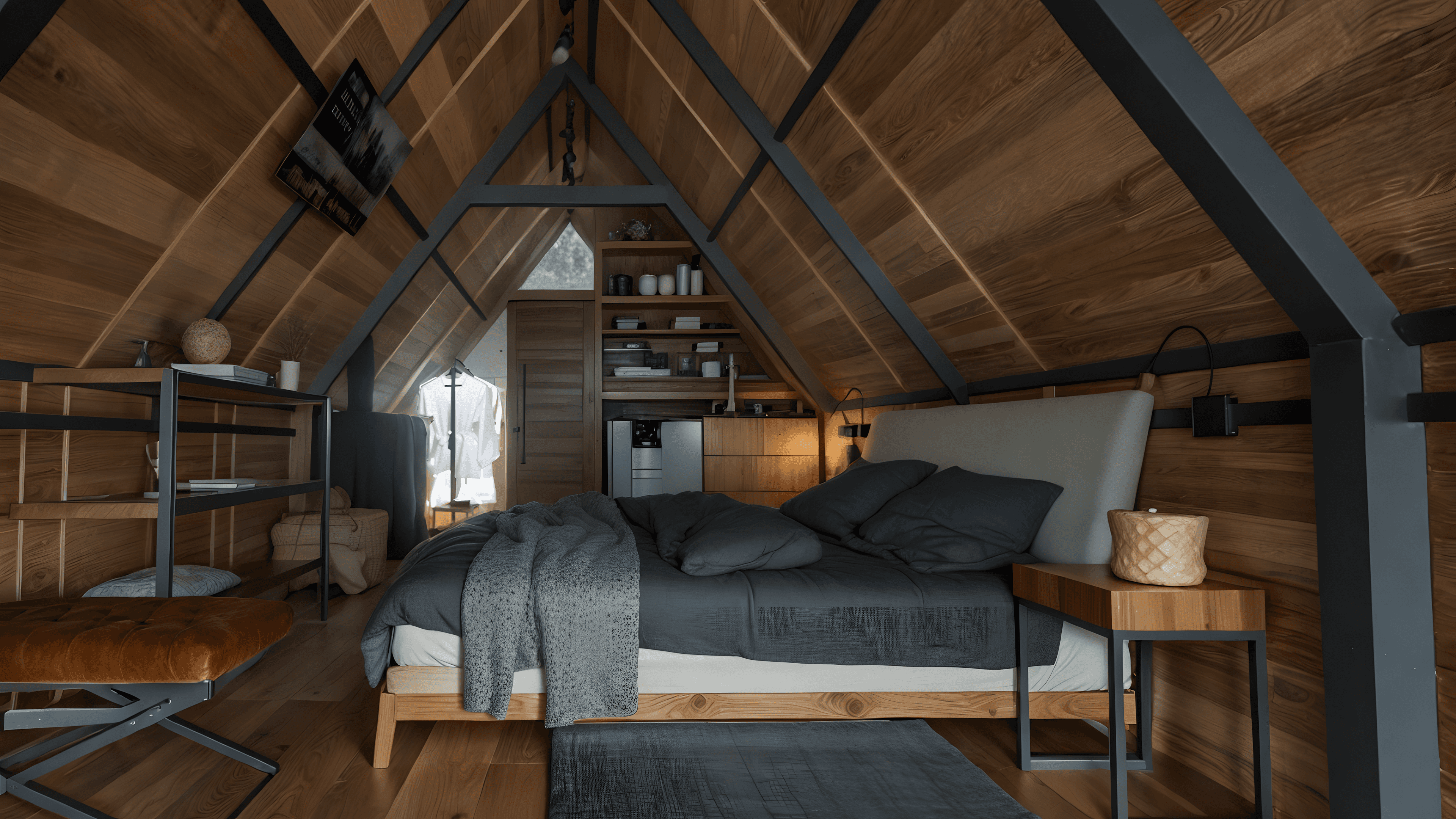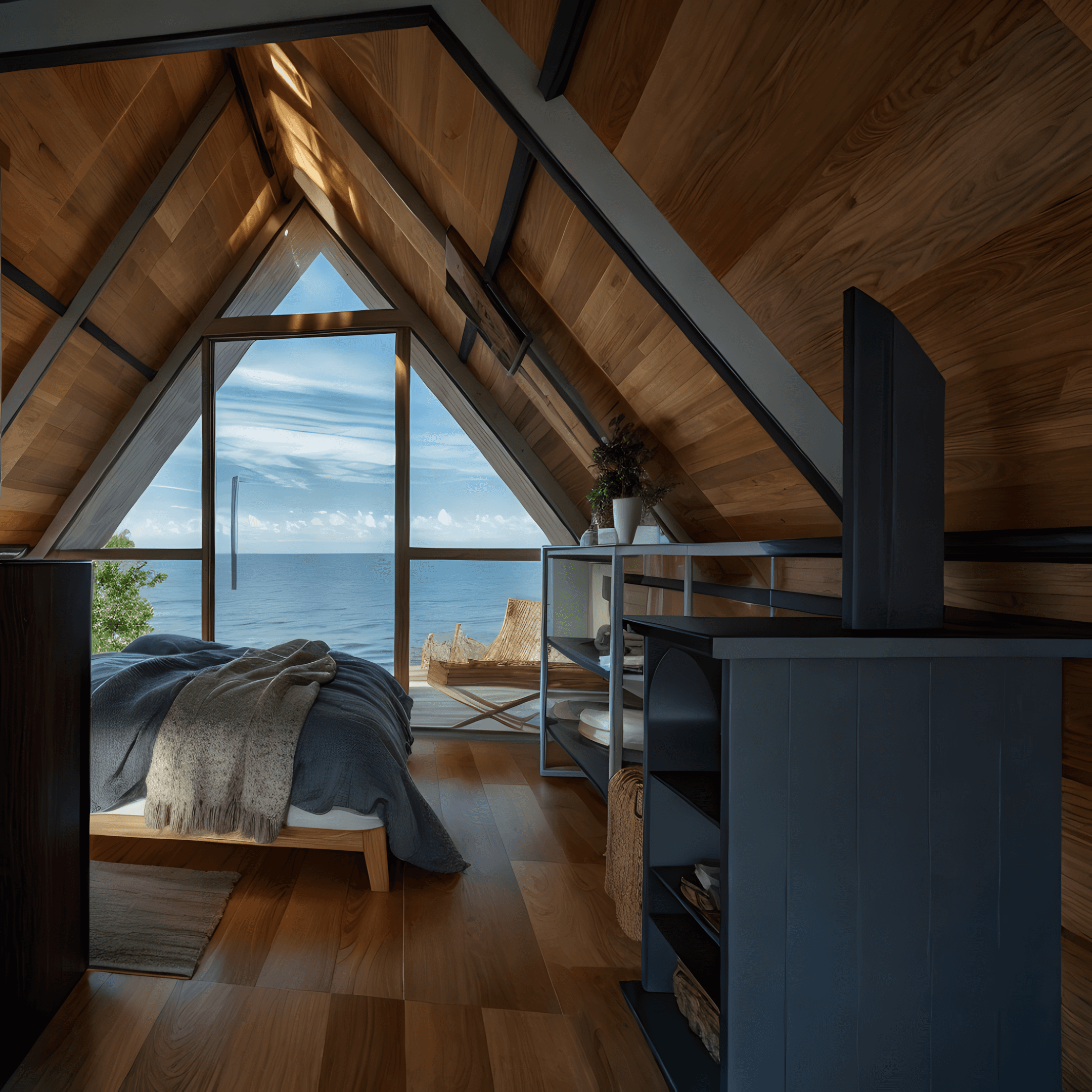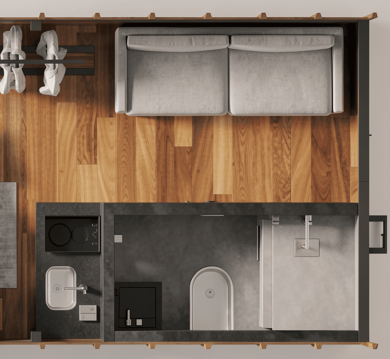 O Chalé A é uma unidade em estrutura modular com 21m² de área interna, composta por módulo de chalé e deck com cobertura. Inspirado no estilo europeu, combina charme, conforto e funcionalidade em um formato compacto e sofisticado. Projetado para oferecer uma experiência acolhedora, integra estética contemporânea e conexão com a natureza em um conceito versátil e transportável. O layout contempla quarto de casal integrado à cozinha e sala com lareira, além de banheiro confortável e deck privativo para lazer. A proposta privilegia integração, iluminação natural e aproveitamento inteligente dos espaços, criando um ambiente ideal para descanso e contemplação.