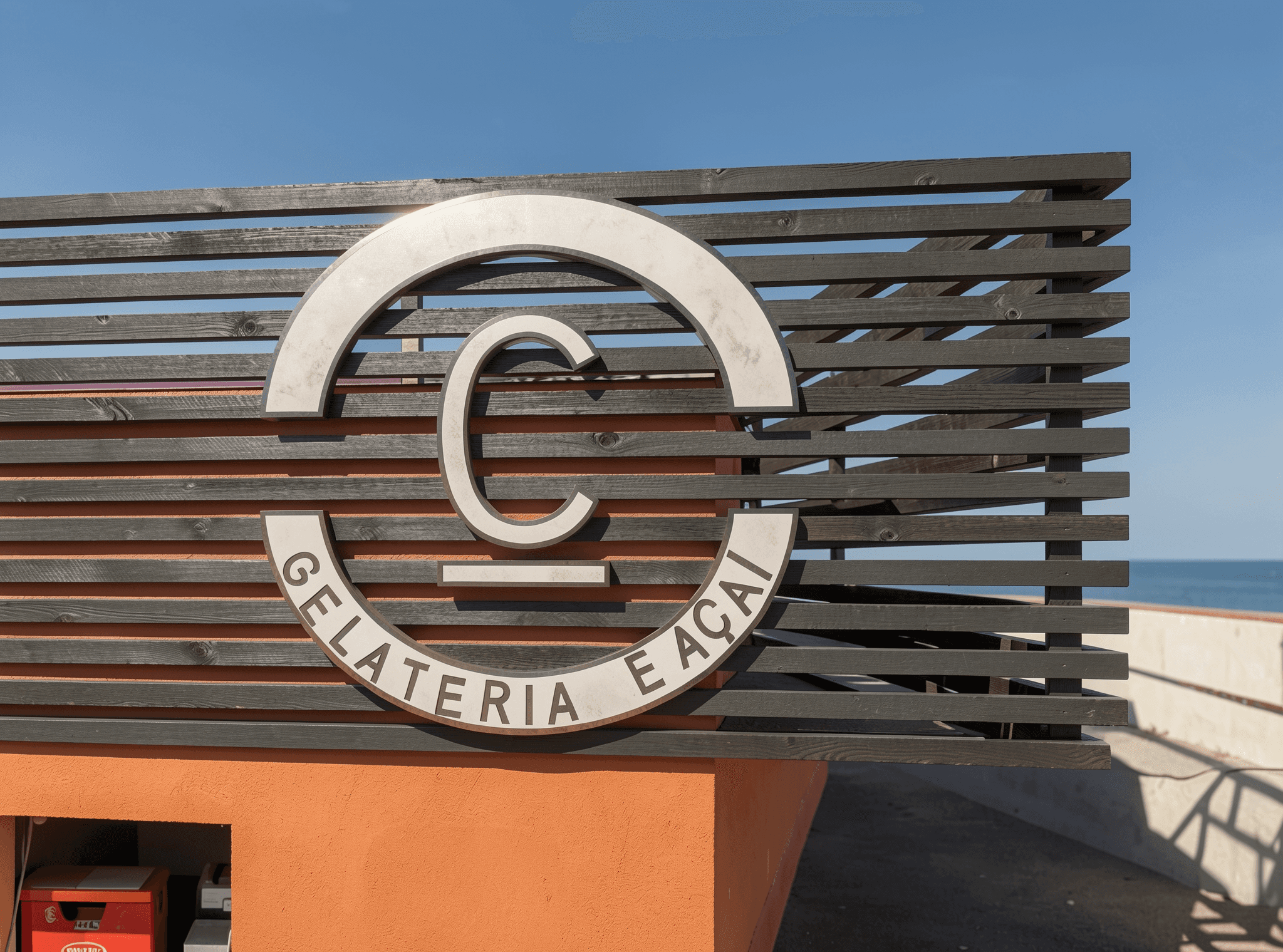 Projeto de marca e fachada para gelateria familiar, unindo identidade, produção e experiência.