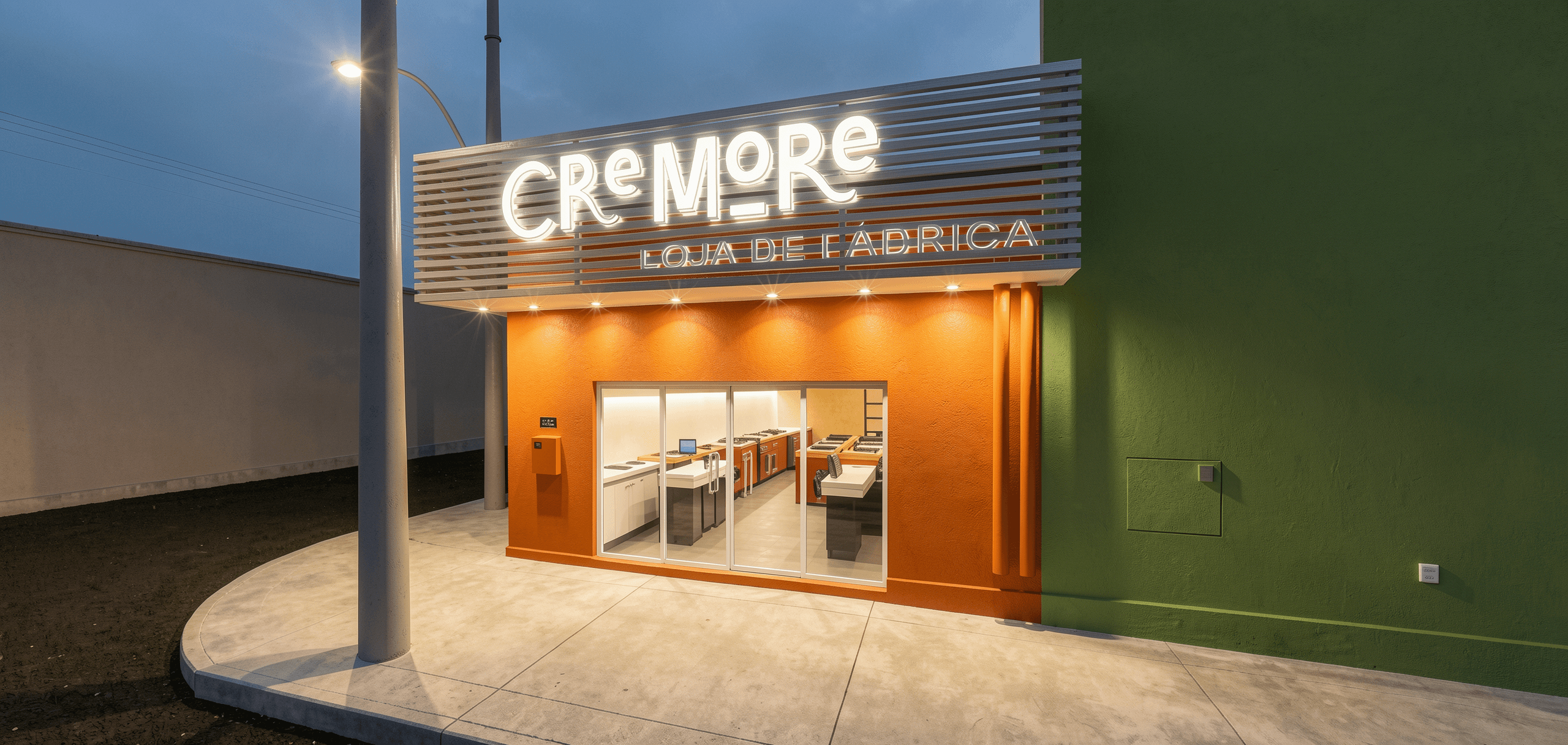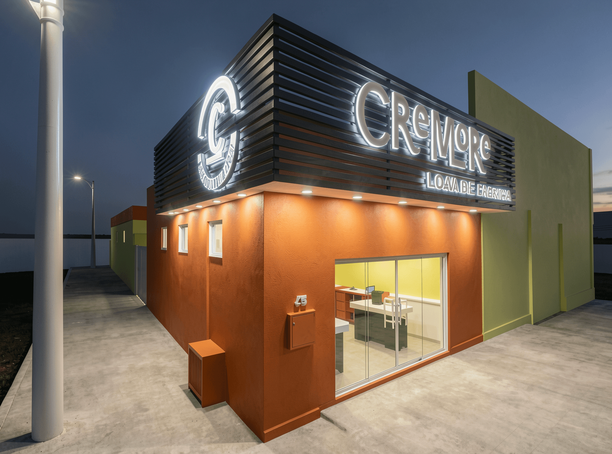 A loja foi projetada para apresentar os produtos de maneira organizada e convidativa, proporcionando uma experiência agradável aos clientes. O resultado é um espaço que une branding, funcionalidade e acolhimento, fortalecendo a presença da Cremore no mercado.
