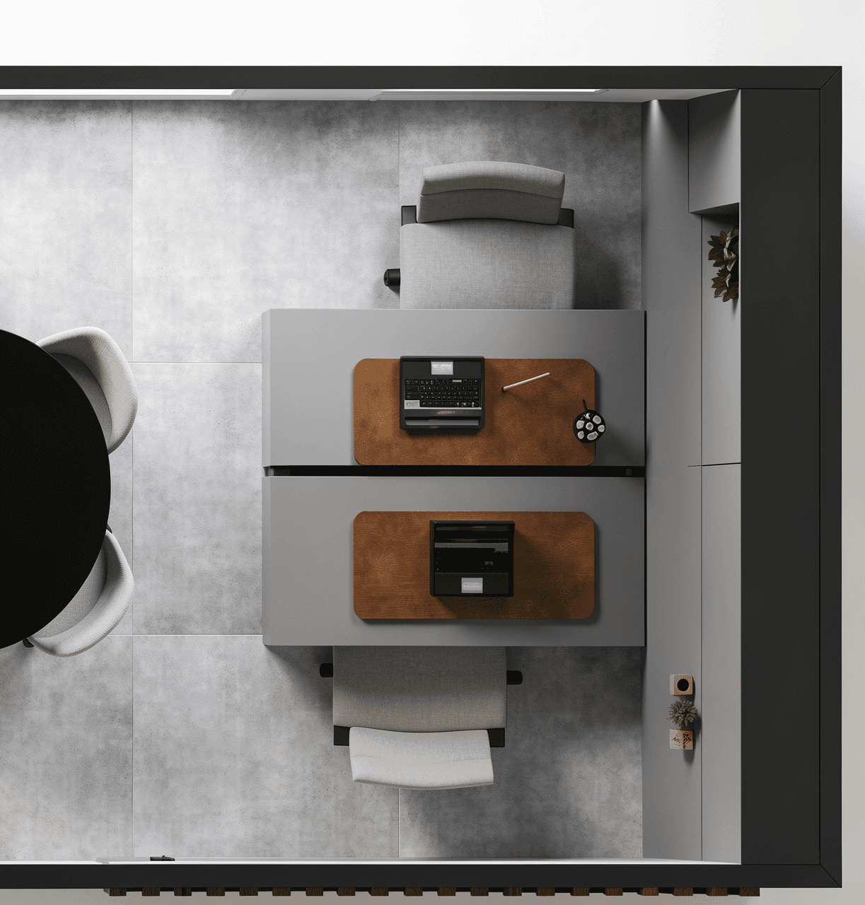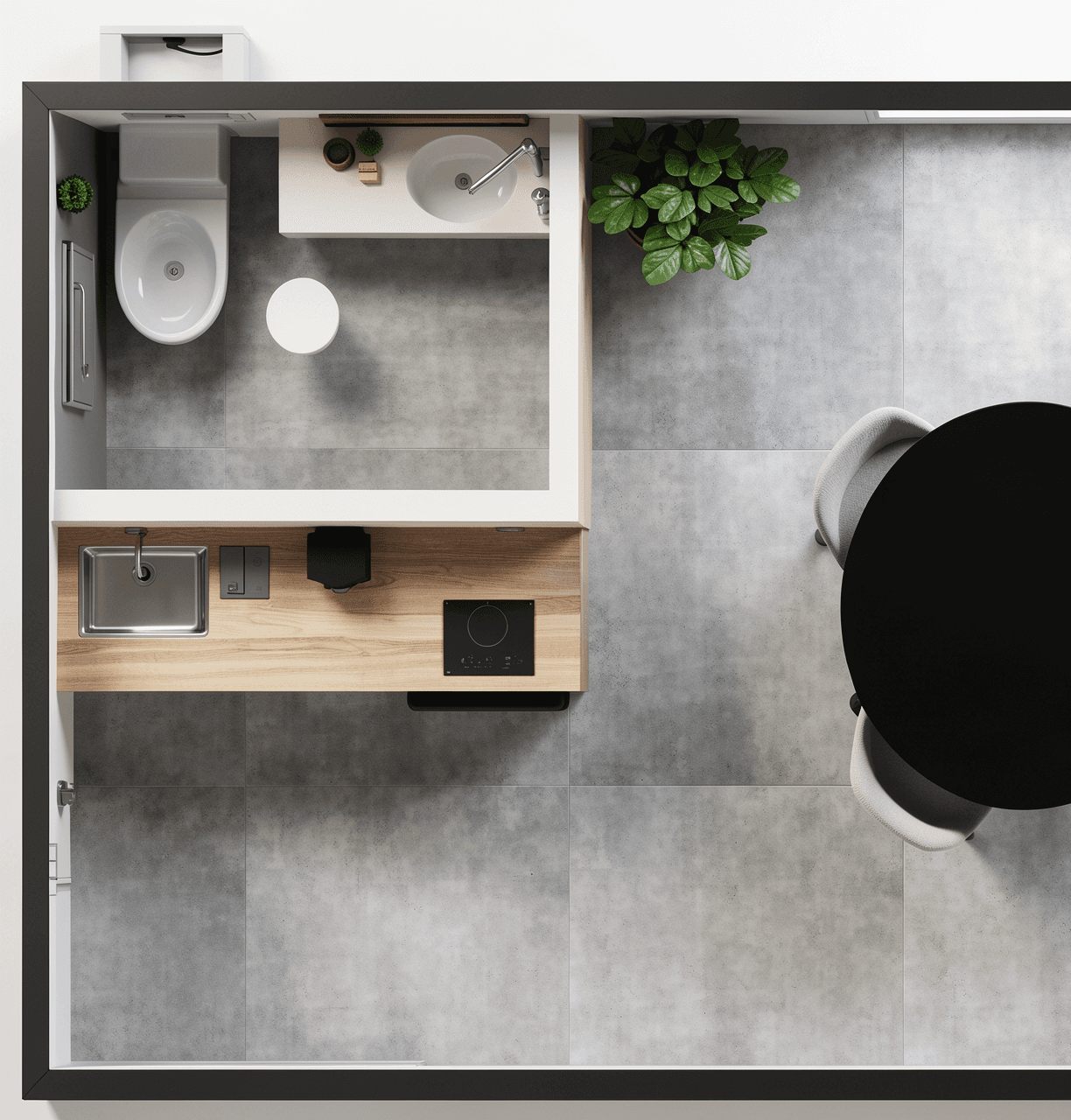 O Studio de Negócios é uma unidade modular comercial com 18m² de área interna, desenvolvida para oferecer um ambiente profissional, moderno e funcional. É ideal para até dois profissionais que desejam trabalhar e receber clientes em um espaço sofisticado, confortável e estrategicamente pensado para fortalecer conexões e impulsionar grandes negócios.