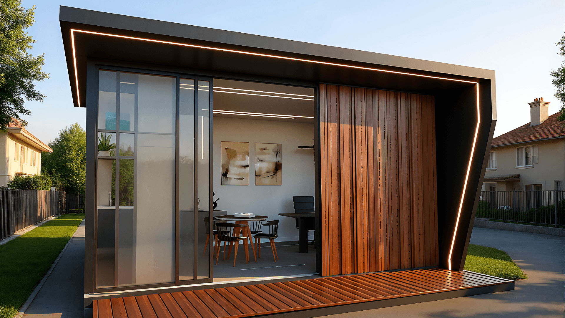 Studio modular de 18m² para negócios, moderno e transportável, ideal para atender clientes e gerar renda.